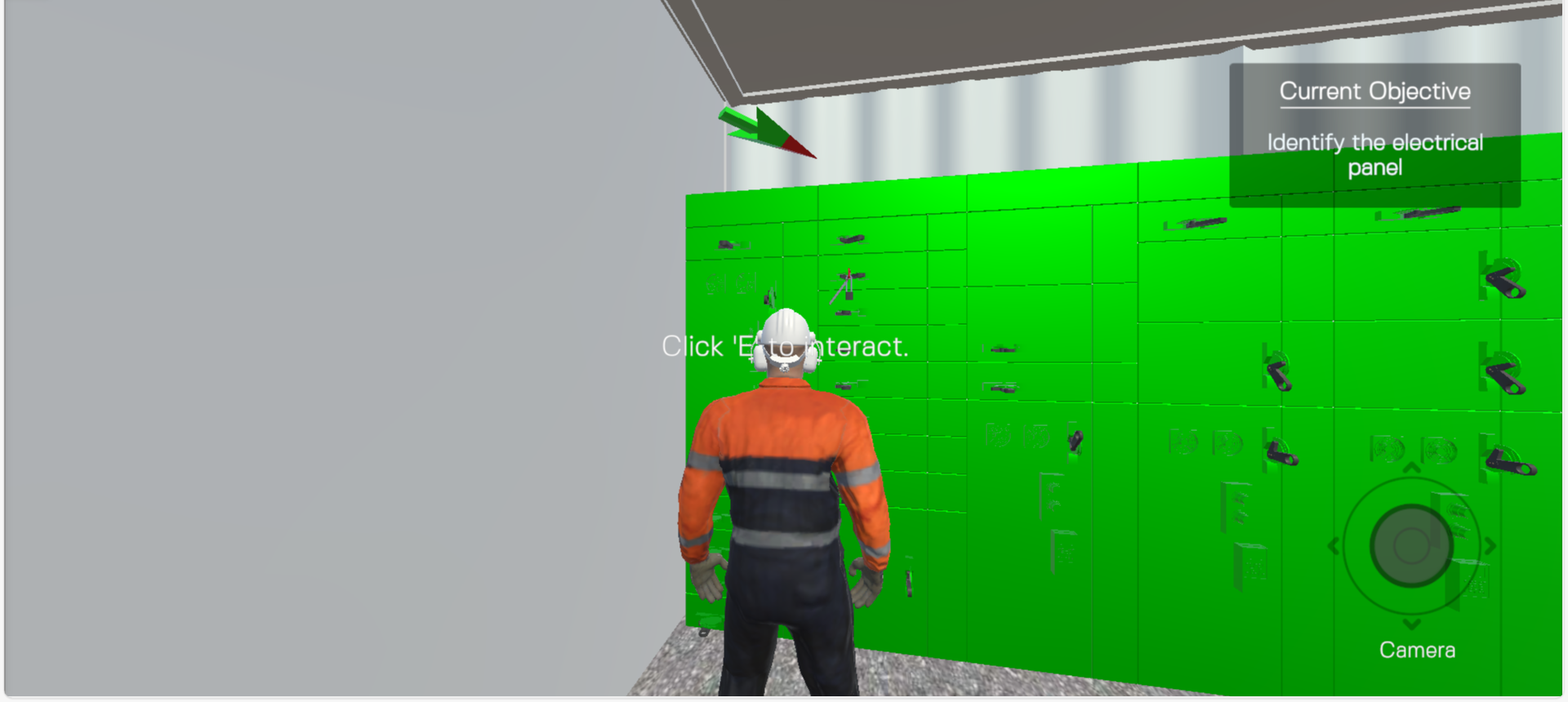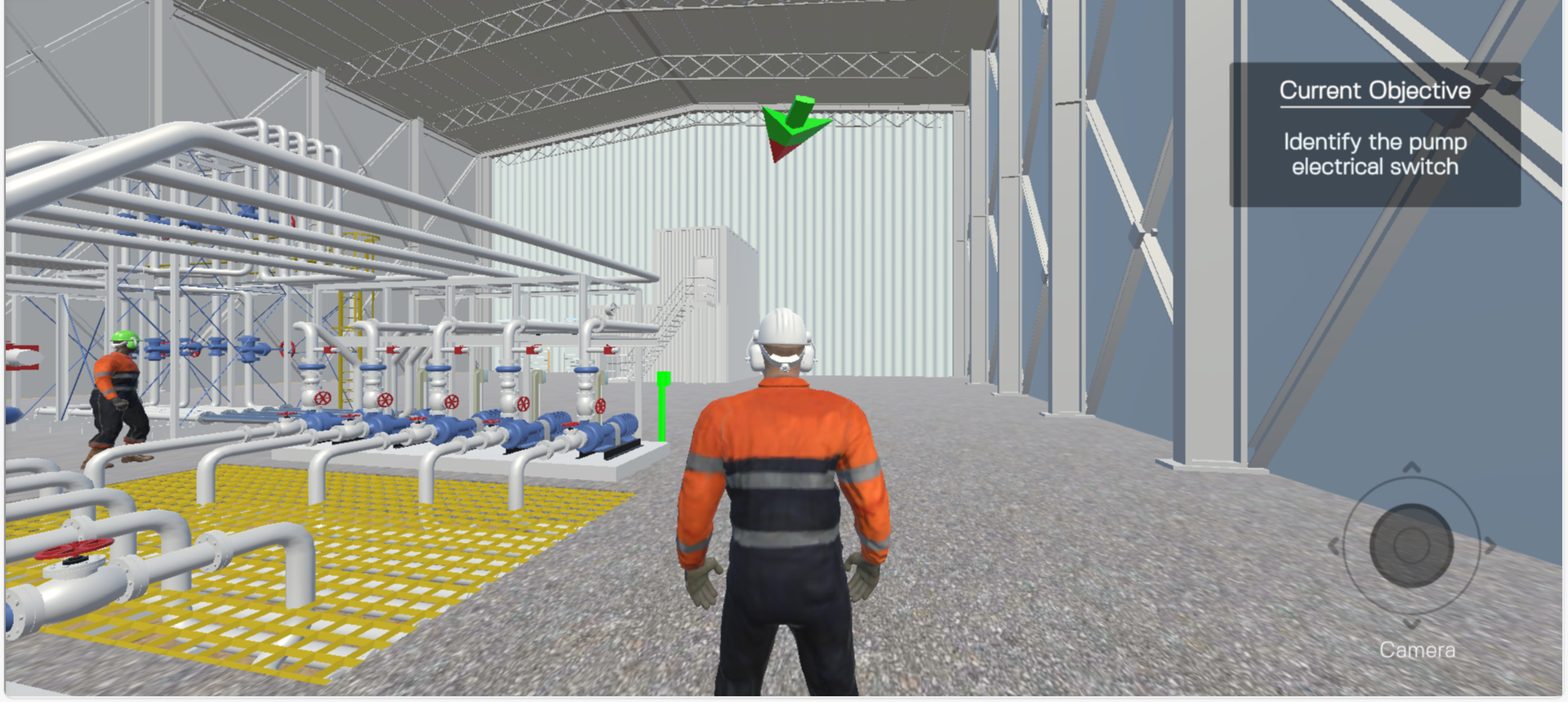 Let’s begin the training by stepping into a digital replica of a manufacturing facility. Today, you’re tasked with completing a lockout/tagout procedure before maintenance begins. Instead of reviewing written steps, you enter the environment and meet your safety mentor, who introduces the pump and outlines the task ahead. You then proceed to perform the procedure exactly as it will be done on the floor.